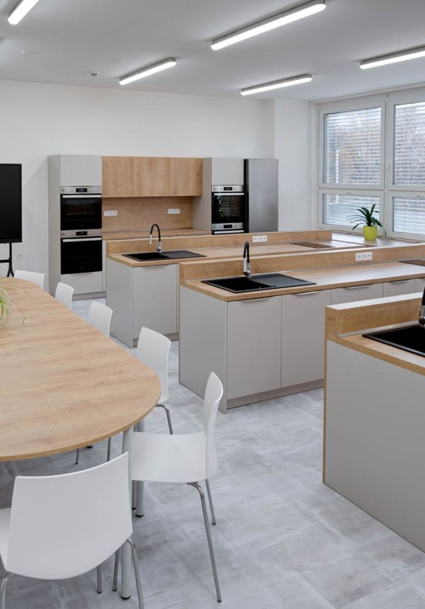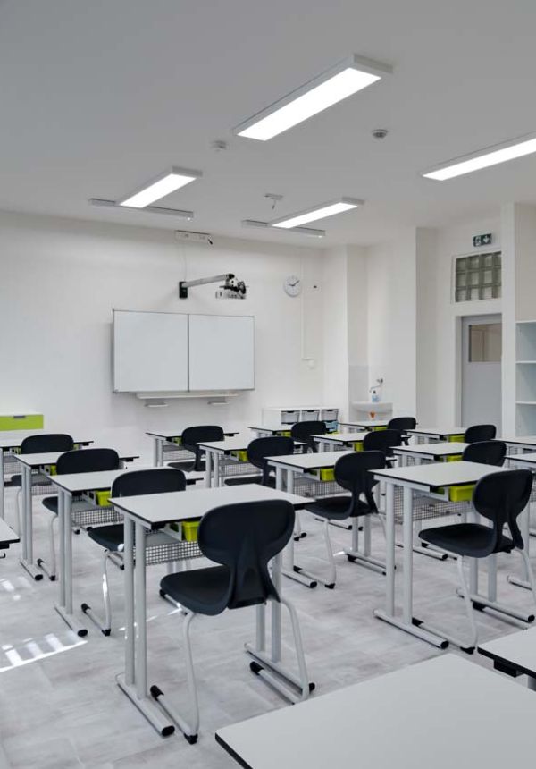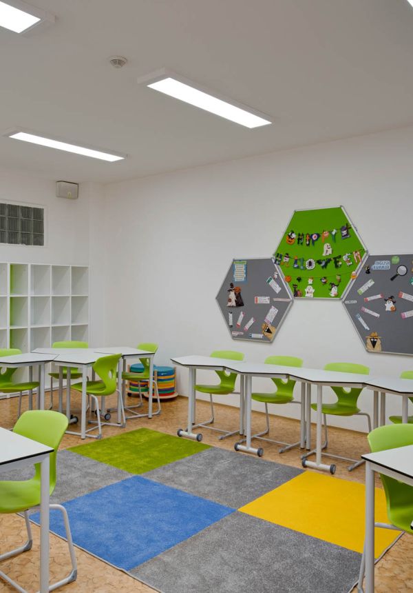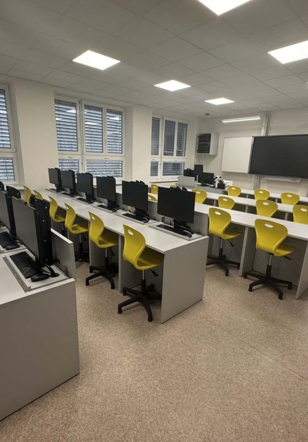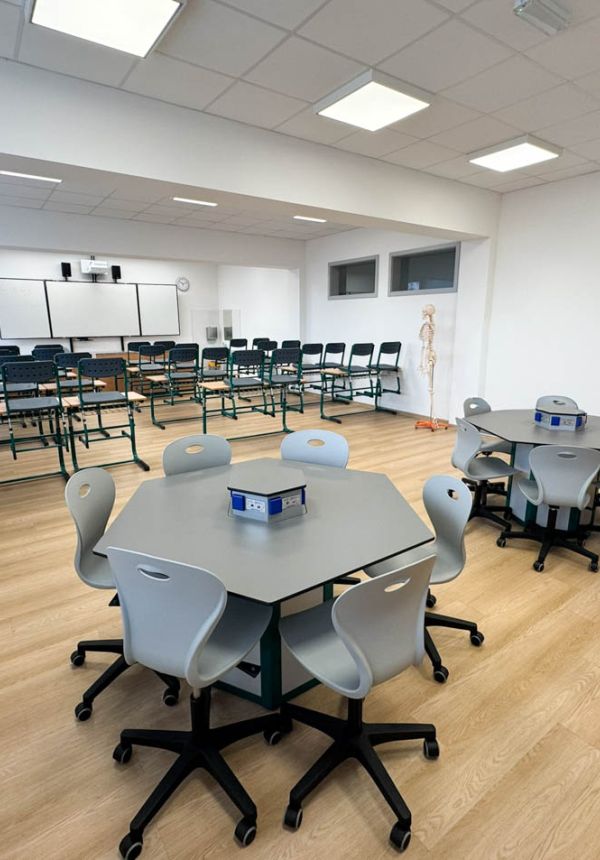 Naše učebny jsou navženy tak, aby podporovaly interaktivní a na spolupráci založenou výuku. Vytváříme učebny kde se tradice setkává s inovací.