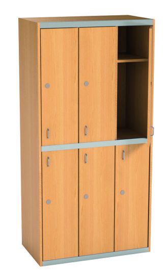 Skříň vysoká s šesti boxy 185 x 90 x 42,4 cm.